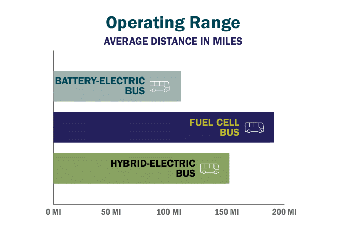 Conditions that impact operation range include battery charge or capacity, the route’s terrain, climate and the frequency of stops, as well as energy consumed by the ZEV’s heating, ventilation and air conditioning (HVAC) equipment. At a time when the coronavirus pandemic is severely reducing transit agencies’ operating revenue, keeping upfront costs to a minimum is more important than ever before. Our analysis looked at average costs to purchase and charge each vehicle type, assuming equal level of available federal funds.
