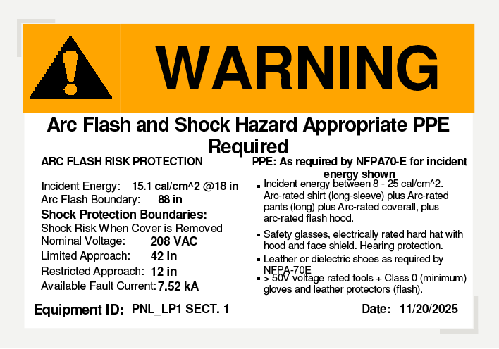 The second component is arc flash analysis. A short-circuit event does not just stress equipment; it also releases energy. Arc flash studies calculate how much energy would be released at each piece of equipment and translate that into actionable information. Labels are generated and installed, informing maintenance personnel of the hazard level and the required personal protective equipment.